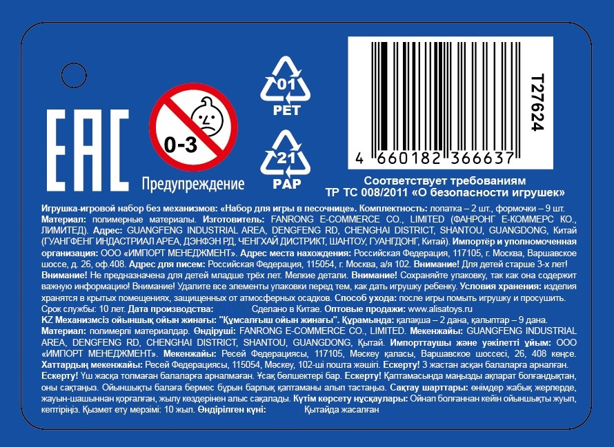 - Тип Набор для игры с песком