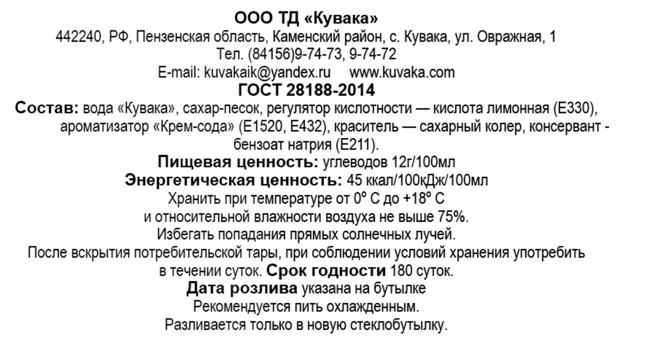 Напиток Кувака газированный Крем-сода, 500мл