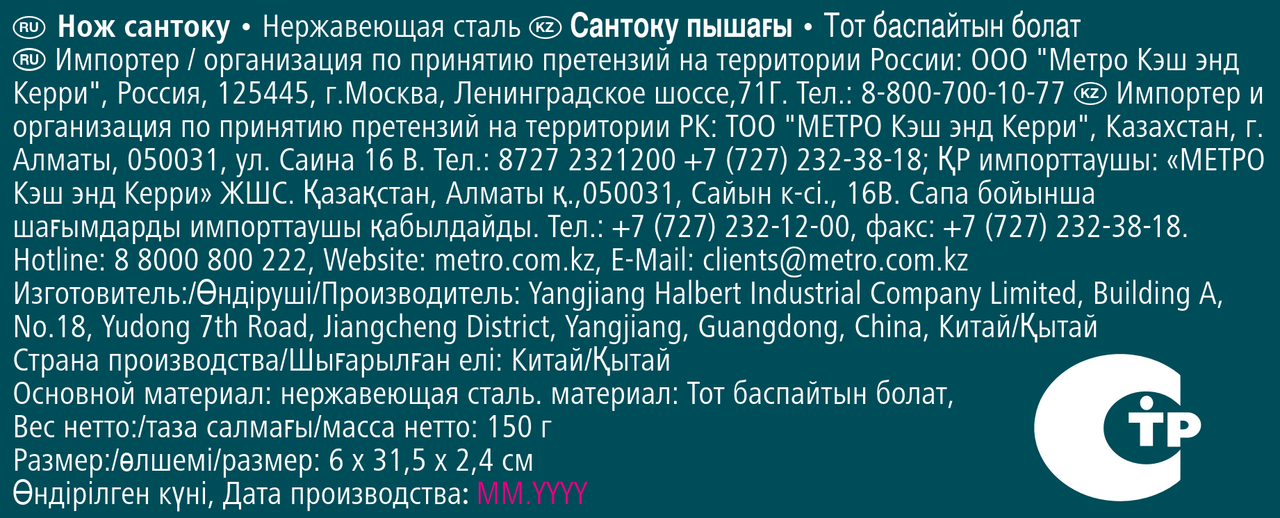 METRO PROFESSIONAL Нож сантоку 18см - это отличное приспособление, которое подходит для разнообразных задач как в профессиональной среде, так и в процессе приготовления блюд дома. Лезвие ножа изготовлено высококачественной нержавеющей стали, которая отличается прочностью и долговечностью. Имеет удобную эргономичную ручку. Длина клинка составляет 18 сантиметров, что позволяет легко и эффективно справляться со многими кухонными задачами. Нож удобен в использовании и обладает достаточно прочной конструкцией, однако его не рекомендуется мыть в посудомоечной машине.