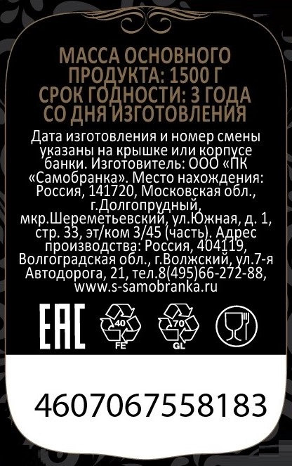 • Тип упаковки Стеклянная банка
