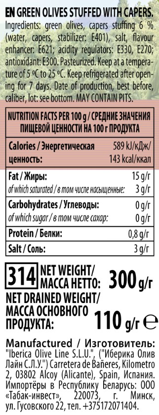 Оливки Iberica с каперсами, 300г