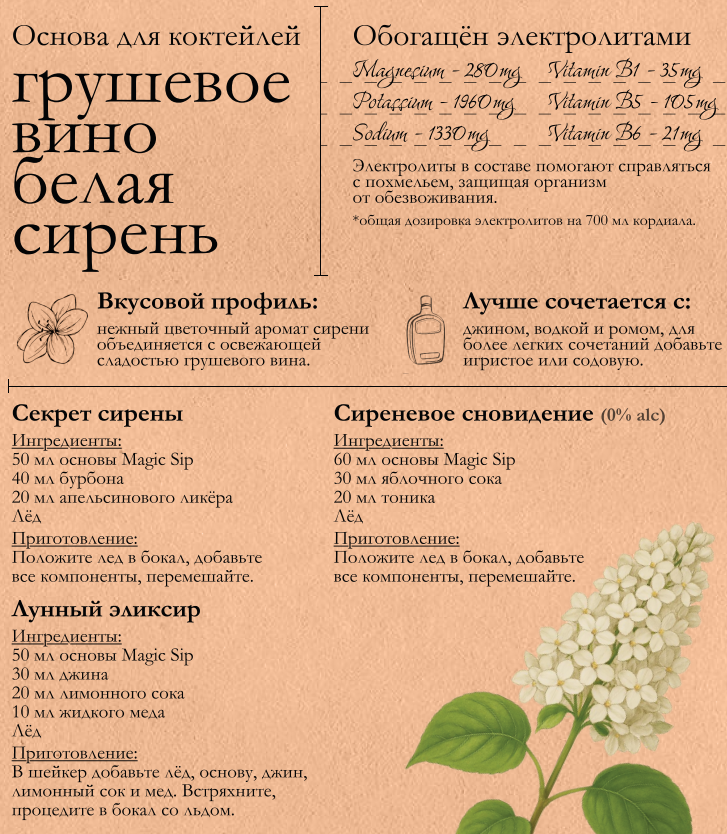 Основа для коктейлей Magic Sip Pear Wine and Lilac безалкогольная, 0.7л
