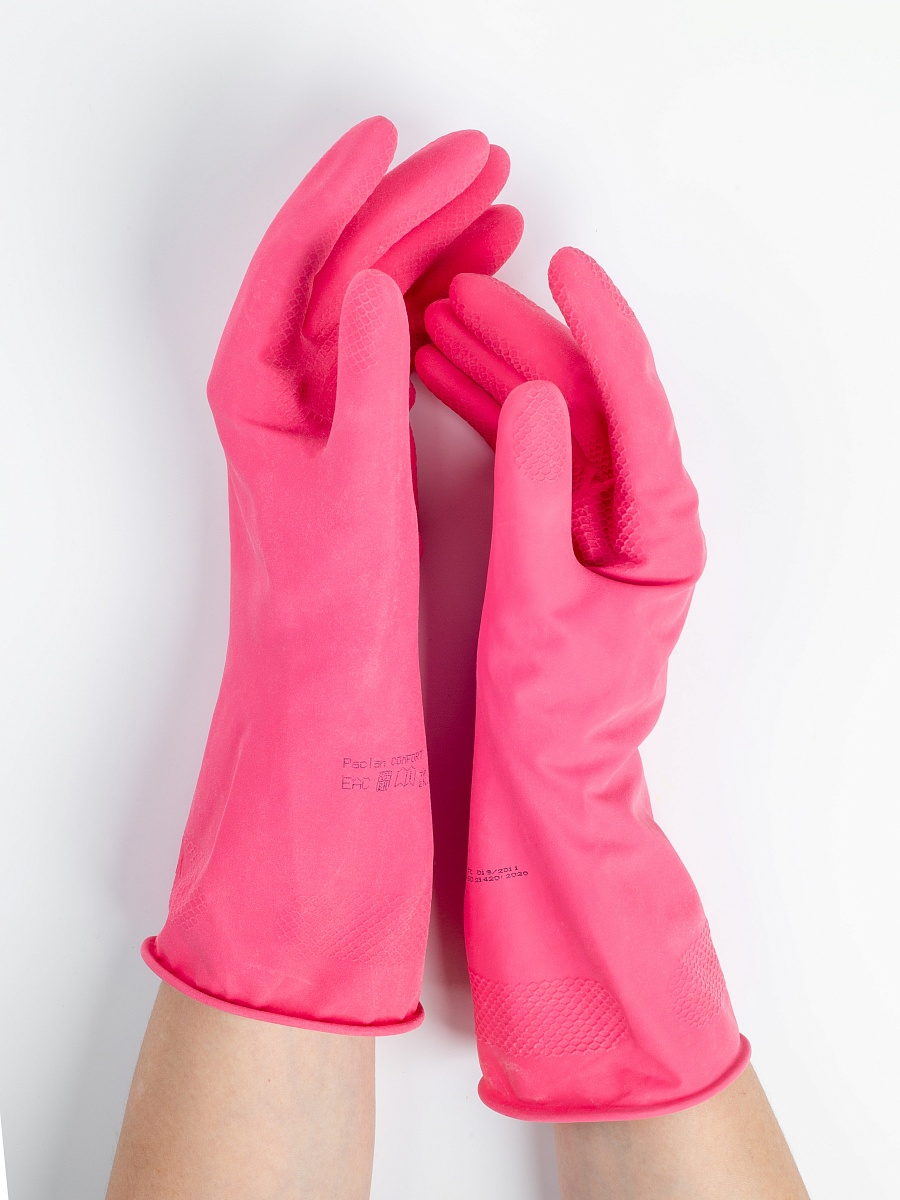 Перчатки хозяйственные Paclan Comfort латексные S, 30 x 14.5 x 0.9см