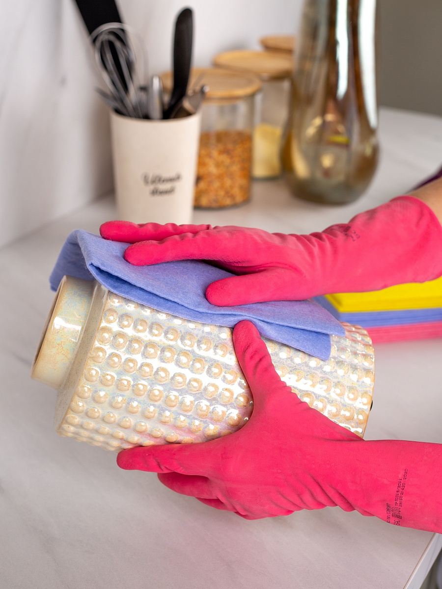 Перчатки хозяйственные Paclan Comfort латексные S, 30 x 14,5 x 0,9 см — плотные и прочные изделия, которые подойдут для всех видов хозяйственных работ, а также мытья автомобиля и работы в саду. Латекс считается самым эластичным материалом, который сохраняет высокую тактильную чувствительность рук. А при порезах и проколах повреждения не расползутся. Перчатки имеют 100% хлопковое напыление, что делает их максимально приятными на ощупь. Специальный каплеотбойник на манжете перчатки предотвращает протекание и попадание капель на кожу рук. Рельефная поверхность ладони обеспечивает удобный захват и предотвращает выскальзывание предметов. Яркий дизайн выделяет продукт на полке.