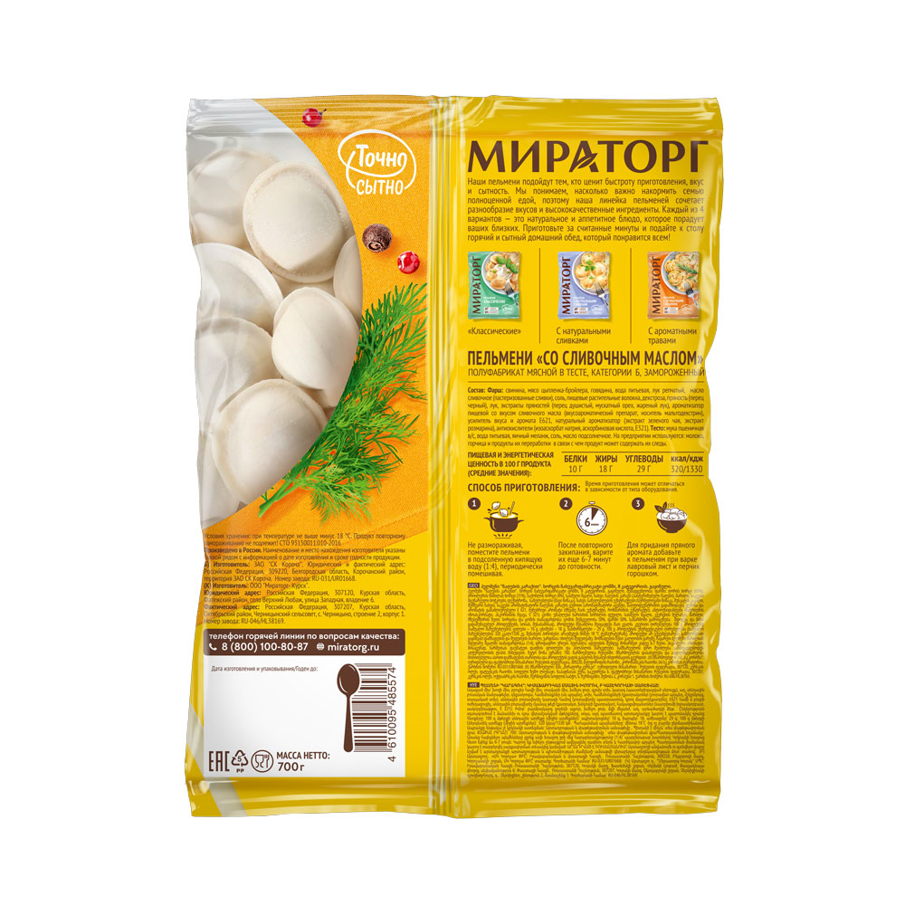 Пельмени Мираторг со сливочным маслом замороженные, 700г