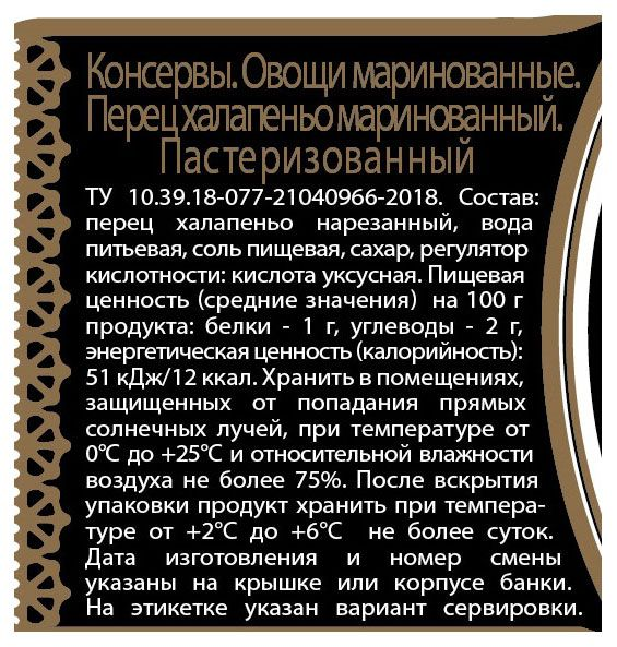 Перец халапеньо, вода, соль, сахар, регулятор кислотности: уксусная кислота, эмульгатор Е509, консервант Е211.