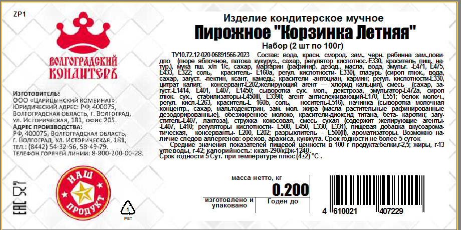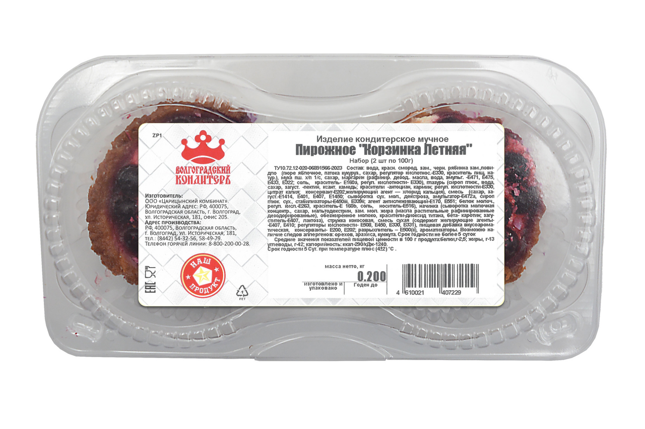 Пирожное Волгоградский кондитер Корзинка летняя 2шт х 100г, 200г