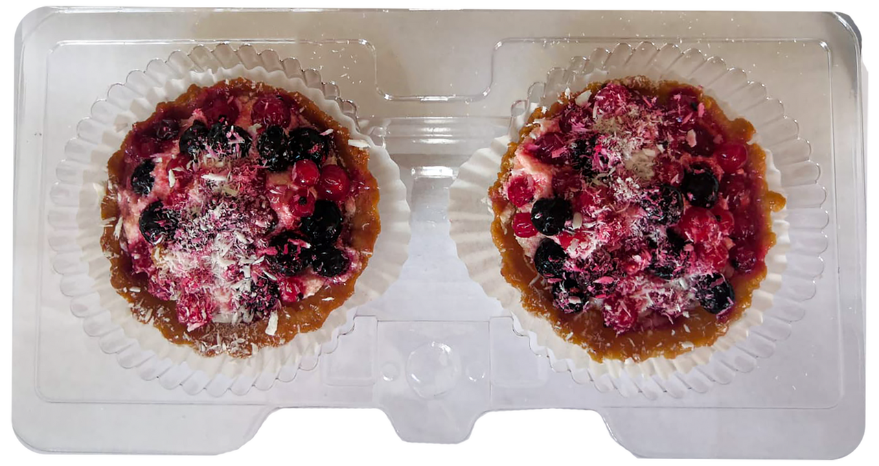 Пирожное песочная корзинка с вишневым повидлом, сливочно-заварным кремом, отделано желе из красной смородины и черноплодной рябины, декорировано кокосовой стружкой.
