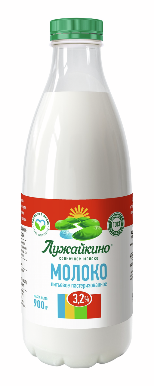 Молоко Лужайкино пастеризованное 3.2%, 900г