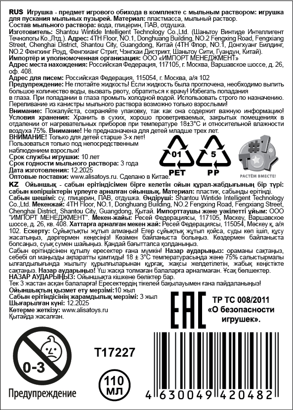 Это игрушка, с которой будут с удовольствием играть девочки и мальчики в любом возрасте. Даже если в этот момент рядом с ребенком не окажется его друзей, ему все равно не будет скучно. Сверкающие и переливающиеся шарики вызывают много положительных эмоций, завораживают и привлекают внимание. Можно выдуть сразу несколько штук или постараться надуть один и очень большой. Ребенок сможет попытаться поймать его и удержать на палочке, сквозь которую выдул пузырь. Играть могут сразу несколько человек, по очереди пользуясь колбой. Дополнительное удовольствие дети получат, если устроят соревнование. Мыльным пузырям обрадуется любой ребенок. Большой колбы хватит надолго. Сверху на рукоятке имеется игрушка, которой ребенок сможет играть после того, как закончится мыльный раствор. Он абсолютно безопасен, не вызывает аллергии и разрешен к продаже контролирующими органами. Использовать игрушку следует на улице, чтобы исключить попадание на предметы обихода и мебель мыльного раствора, который может оставлять следы.