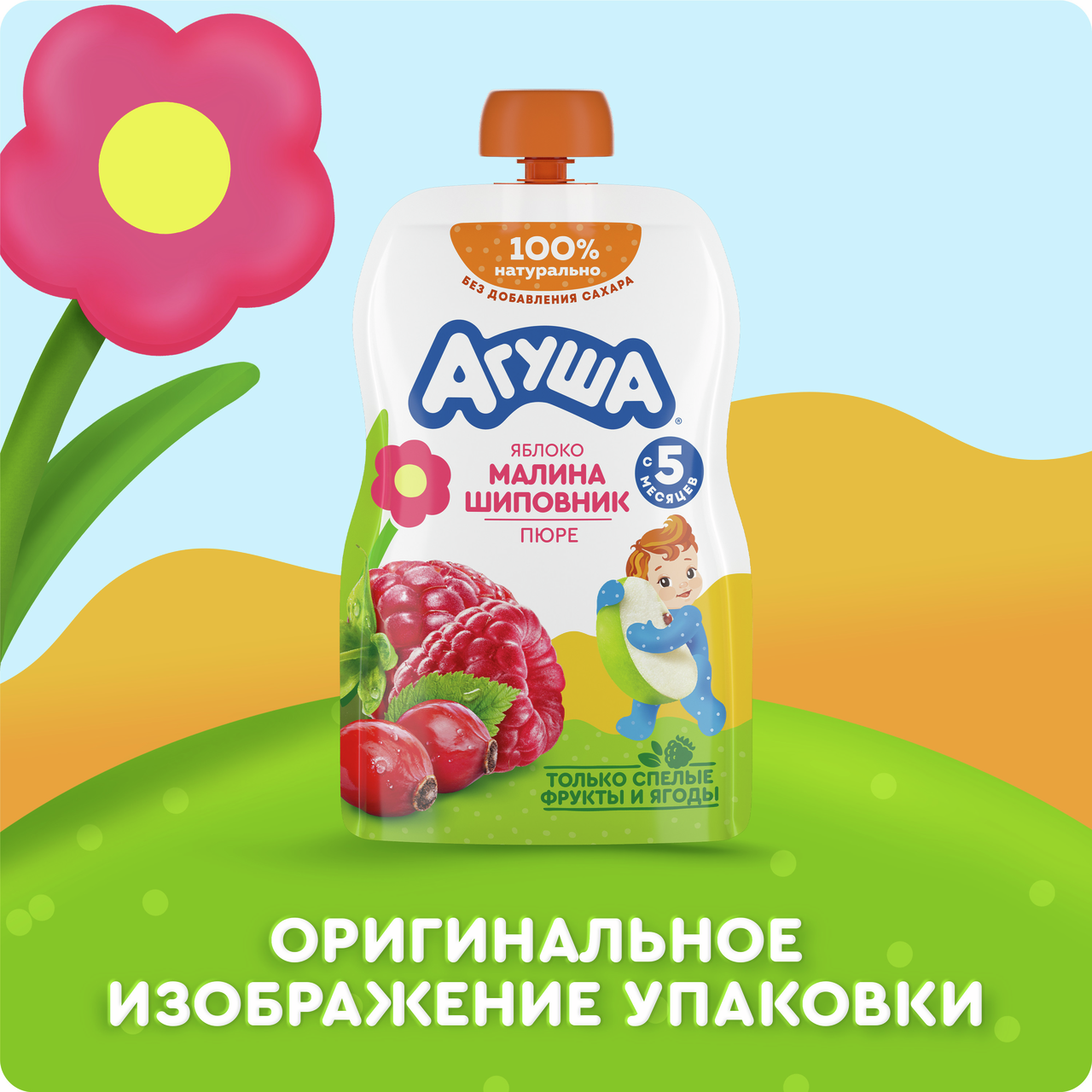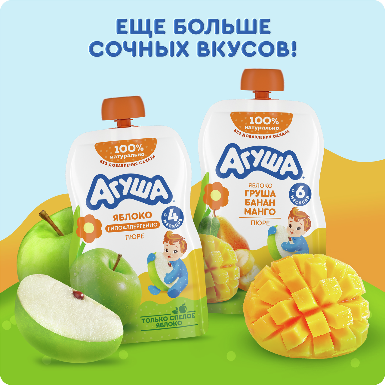 Детское фруктовое пюре Агуша в мягкой упаковке. Возьмите на прогулку вкусный перекус от Агуша!