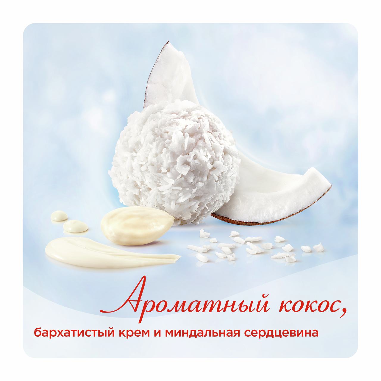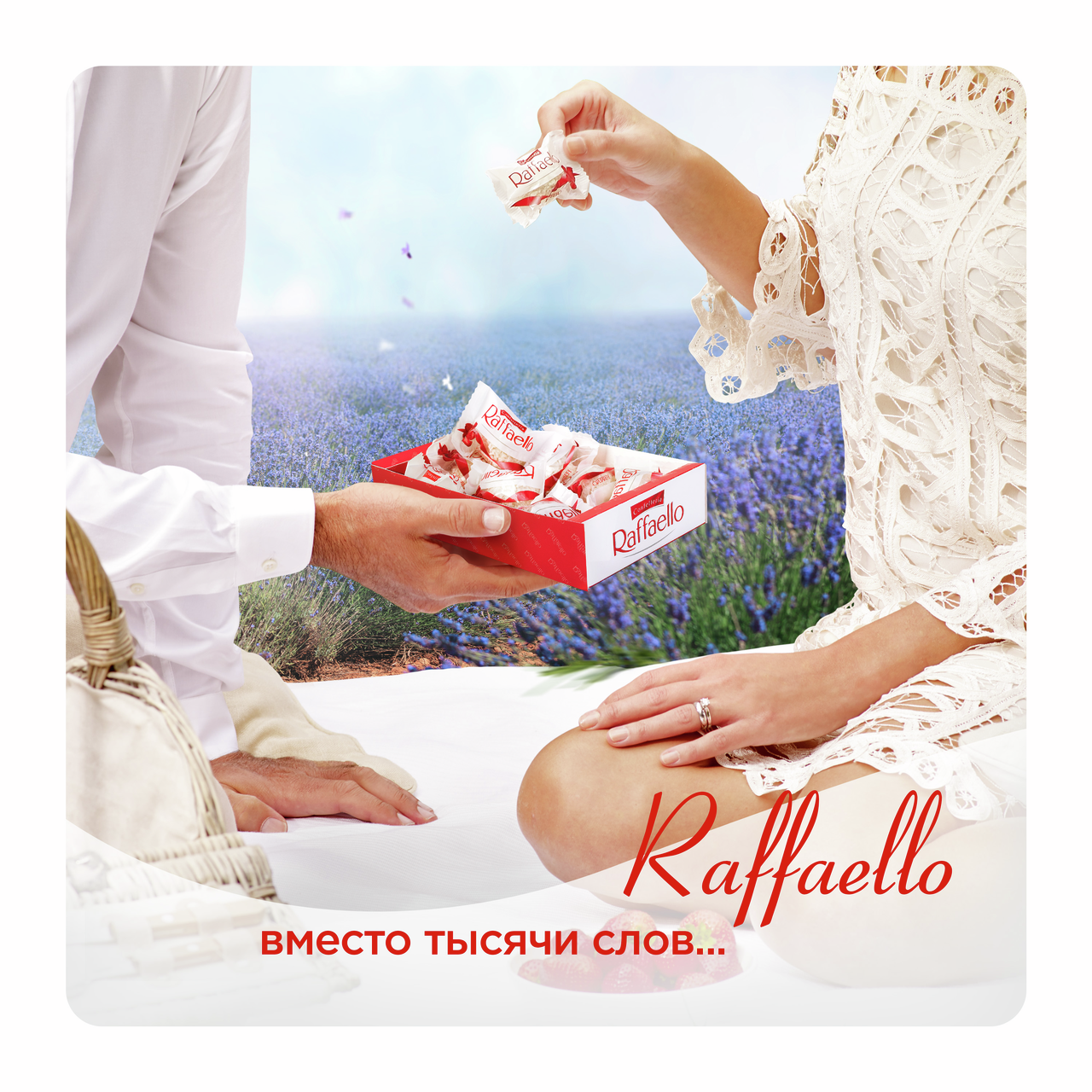 Уникальный рецепт Raffaello - это гармония ингредиентов, отобранных с особой заботой: сладкий белый миндаль и отборный кокосовый орех с тропических островов придают непередаваемую нежность вкусу. Raffaello - истинное удовольствие. Конфеты с миндалем в кокосовой обсыпке. Большой сюрприз в небольшой упаковке.