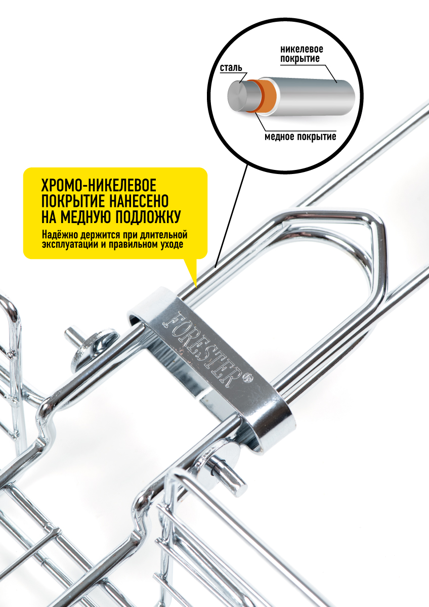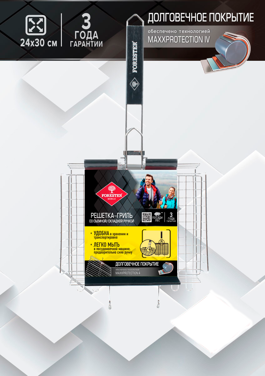 Решетка-гриль Forester Mobile стальная со съемной деревянной ручкой с регулировкой глубины, 30 х 24 х 6см