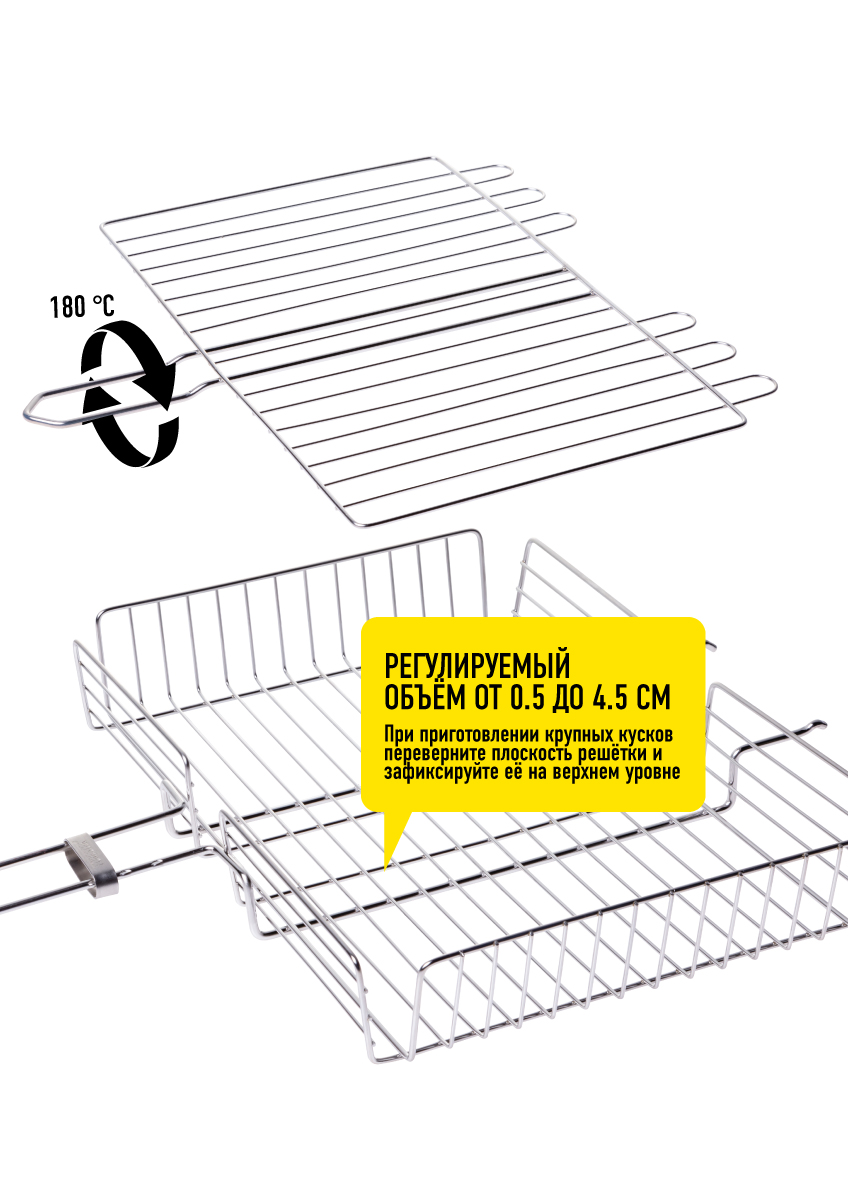 Решетка-гриль Forester Mobile стальная со съемной деревянной ручкой с регулировкой глубины, 30 х 24 х 6 см — незаменимый аксессуар в походах, на барбекю или пикнике. Он отличается повышенной ударопрочностью, износоустойчивостью и гигиеничностью. Коррозиестойкая модель хорошо противостоит высоким температурам, влаге, механическим повреждениям (сколам, деформации, потертостям). Функциональная большая решетка предназначена для запекания мяса, приготовления шашлыков, куриных крылышек, эскалопов из индейки, запеченного картофеля с сыром. Компактная модель разработана для удобства поджаривания рыбных блюд, кукурузы по-мексикански, ароматных грибов, говяжьих стейков. Еда не прилипает к металлической элементам благодаря антипригарному покрытию. За счет компактного размера аксессуара на нем получается размещать несколько порций одновременно. Эргономичная рукоятка помогает без усилий переворачивать или подбрасывать продукты, не обжигая при этом руки.