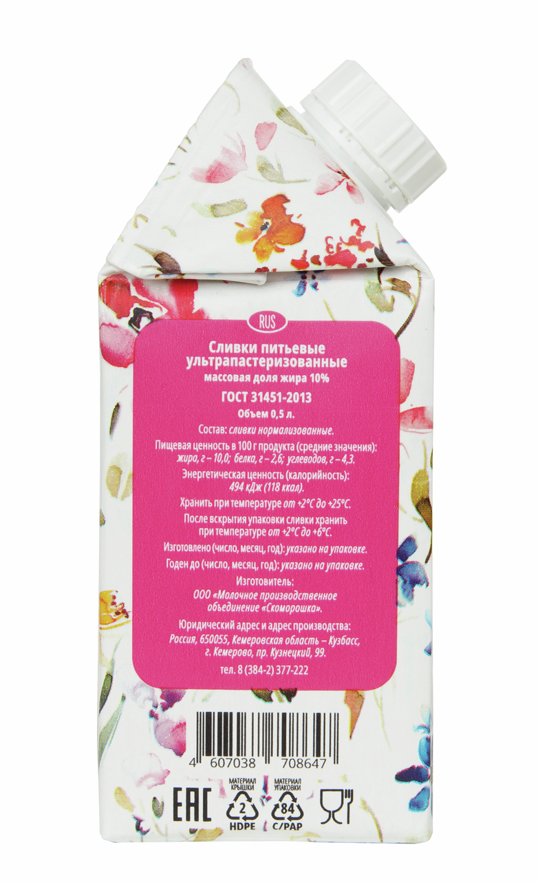 Сливки Литвиновские ультрапастеризованные 10%, 500мл