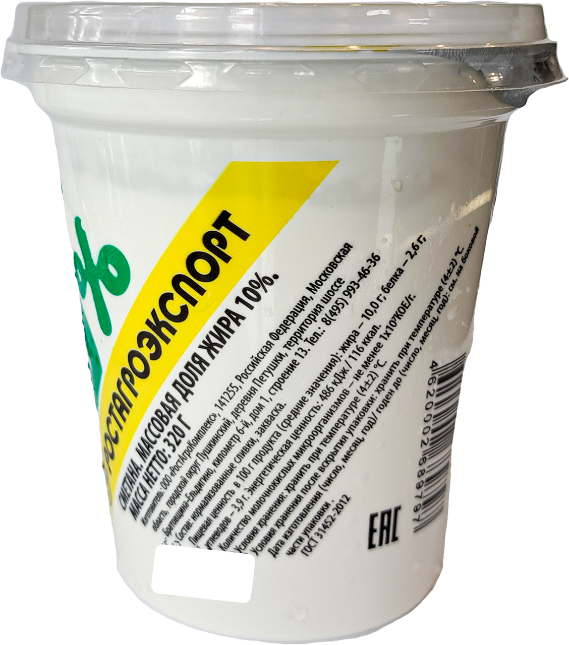 Изготавливается в строгом соответствии с ГОСТ по традиционной рецептуре из натуральных ингредиентов без заменителей молочных жиров и содержит в составе только сливки высокого качества жирностью 10% и заквасочную культуру. Поэтому она обладает приятным сливочным вкусом с характерной приятной кислинкой. А современные технологии производства позволяют изготовить сметану однородной густой консистенции, белоснежного цвета и стабильного качества. Сметана отлично подходит ко многим блюдам и поэтому широко используется в кулинарии.