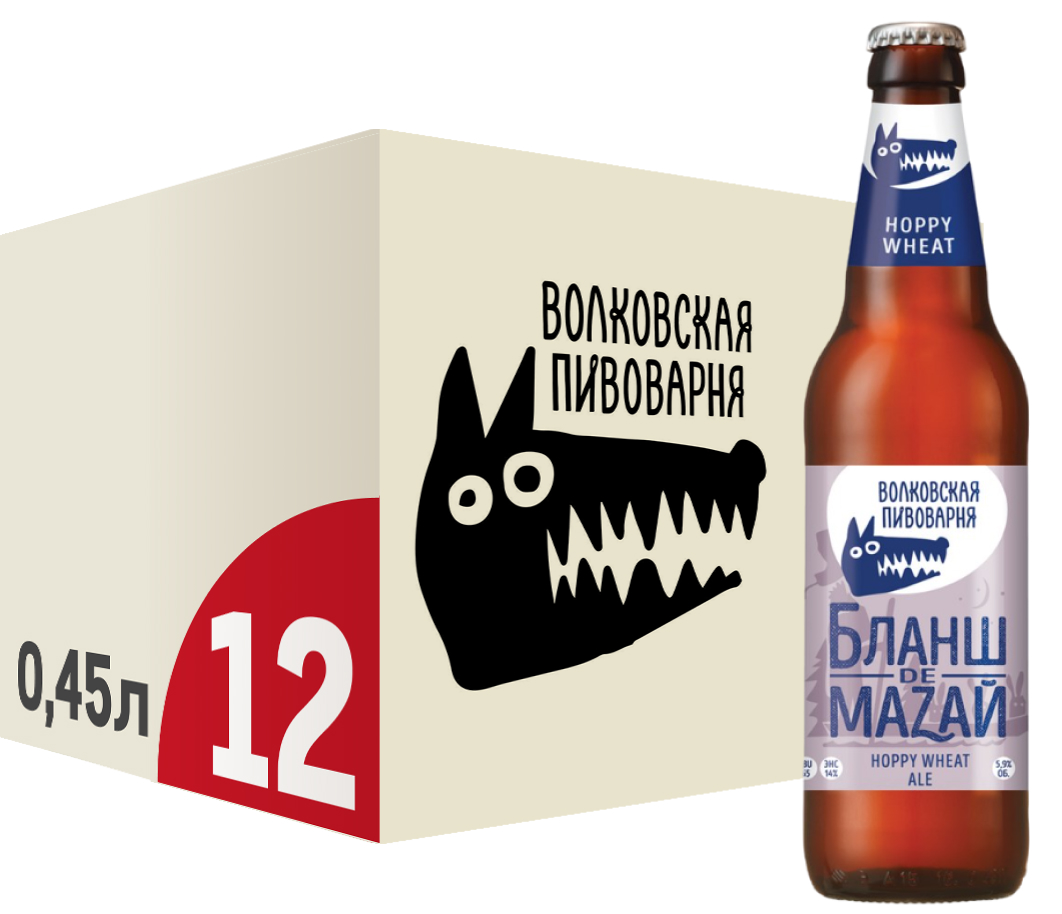 Пиво Волковская пивоварня Бланш де Мазай светлое нефильтрованное, 0.45л x 12 шт