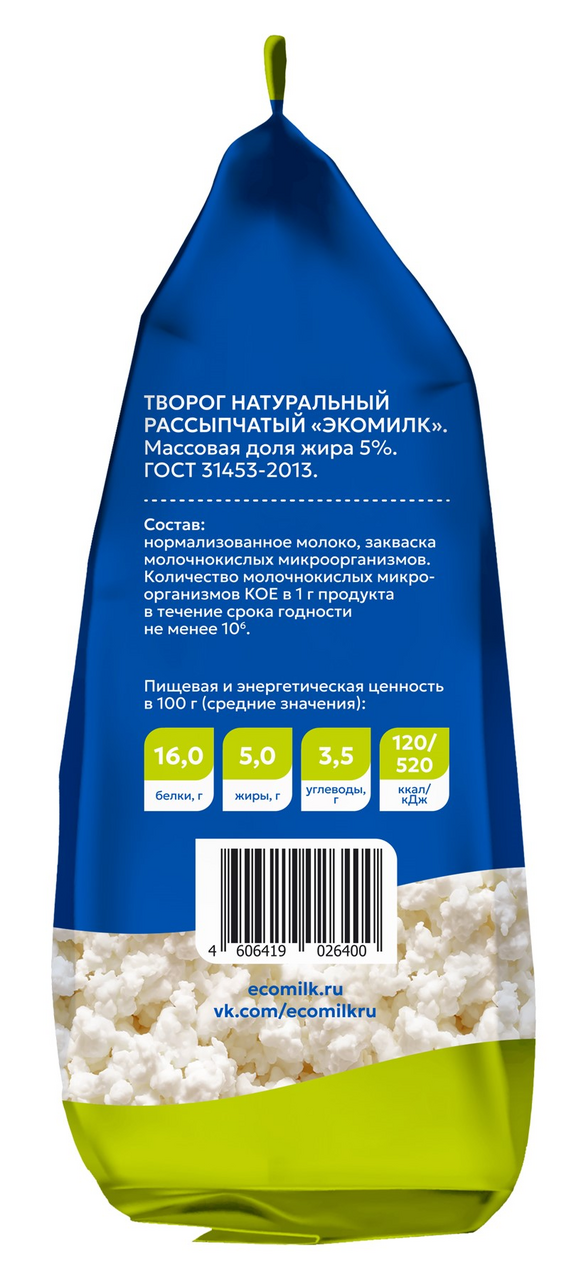 Творог Экомилк рассыпчатый 5%, 280г