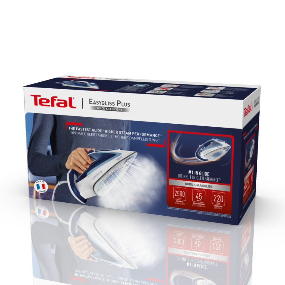 Утюг Tefal FV5736E0 мощностью 2500 Вт легко и непринужденно будет справляться в ваших руках с горами выстиранного белья. При этом вы не устанете – прибор весит всего 1,36 кг. За счет 1.89-метрового шнура расположиться с ним получится на удобном расстоянии от розетки. Подошва Durilium Airglide гарантирует легкое скольжение по любым материалам. Дополнительный плюс этой модели – в возможности вертикального отпаривания вещей. Это особенно удобно, когда нужно избавить от складок деловой костюм, висящий на плечиках, или плотные портьеры. За счет разбрызгивания воды и парового удара утюг Tefal Easygliss 2 FV5736E0 справится с пересушенными вещами. Если прибор некоторое время не используется, он отключается автоматически. Противокапельная система позаботится о том, чтобы на деликатных тканях не оставало��ь ни следа воды.