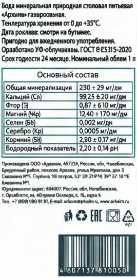 Вода Аркаим минеральная негазированная, 1л