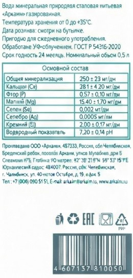 Это питьевая вода высокого качества для утоления жажды и поддержания водного баланса организма в течение дня. Негазированная вода содержит минеральные вещества: кальций, магний и калий.