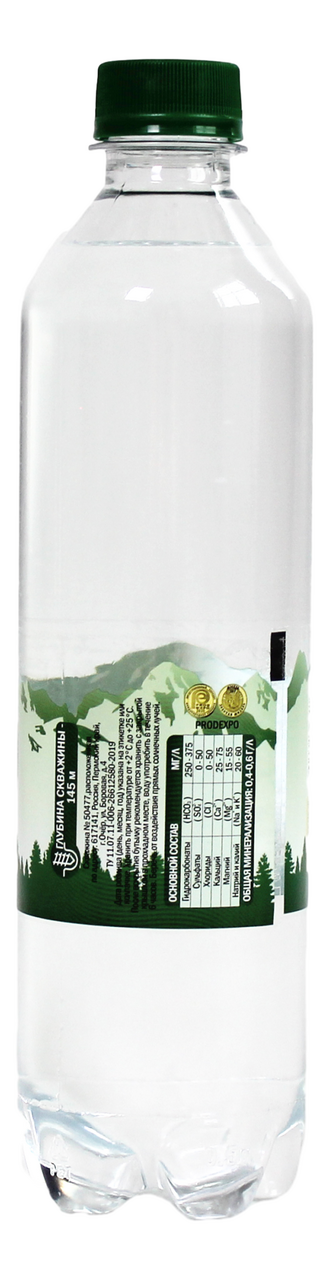 Общая минерализация: 0,4 – 0,6 г/л; Основной состав, мг/л: Гидрокарбонаты (HCO3-) 250 - 375; Сульфаты (SO42-) 0- 50; Хлориды (CI-) 0- 50; Кальций (Ca2) 25 - 75;Магний (Mg2) 15 - 55; Натрий и калий (Na+ иK) 20 - 60.