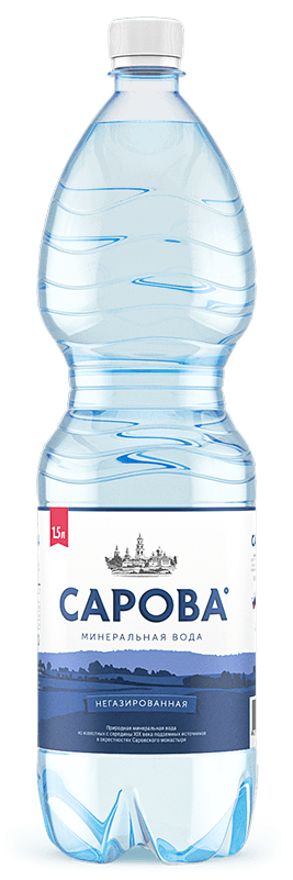 Вода Сарова добывается из артезианской скважины. Воду добывают из артезианских скважин, расположенных в экологически чистых районах России. Негазированная вода разливается по бутылкам и разливается в меньшие по объему по сравнению с водой из других источников.