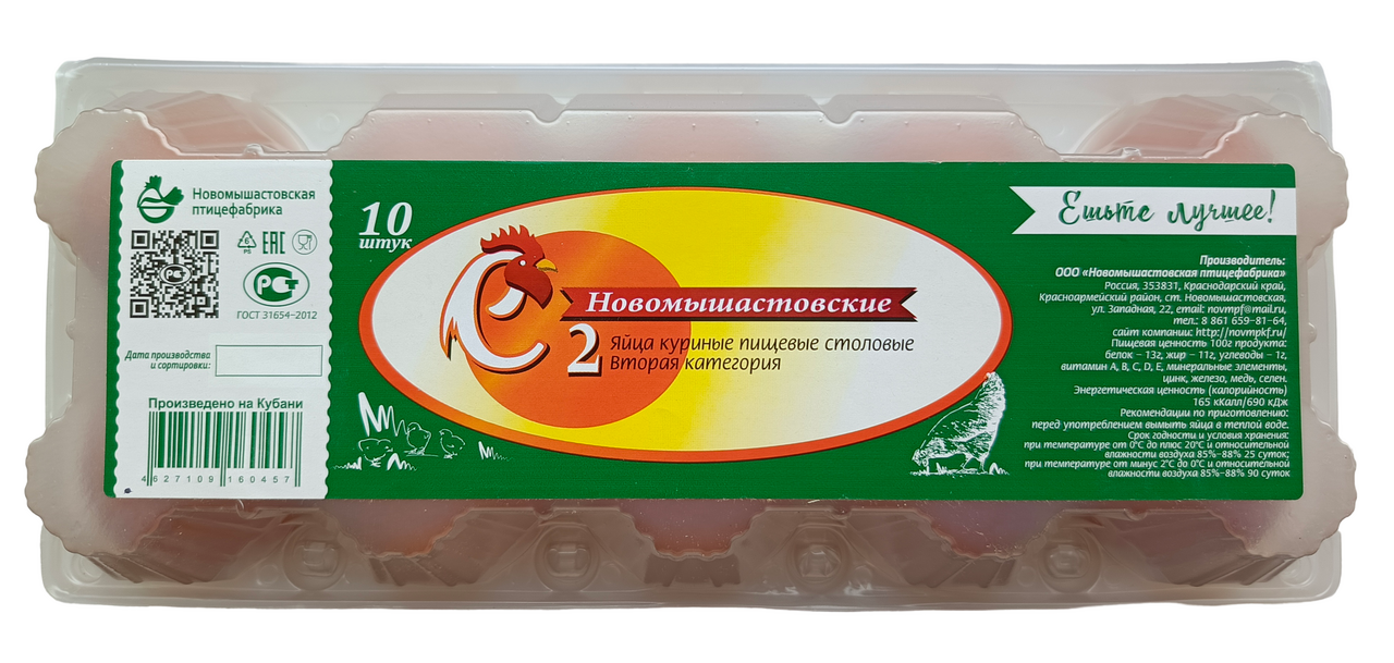 Яйцо куриное Новомышастовская ПФ пищевое С2, 10шт