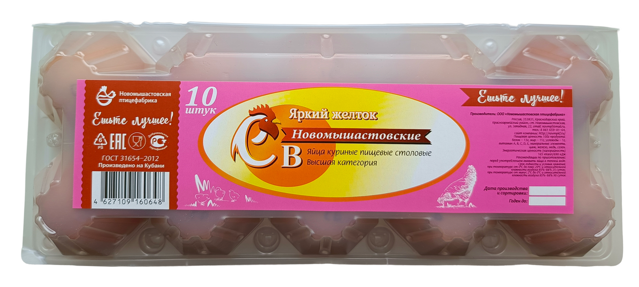 Яйцо куриное Новомышастовская ПФ пищевое СВ, 10шт