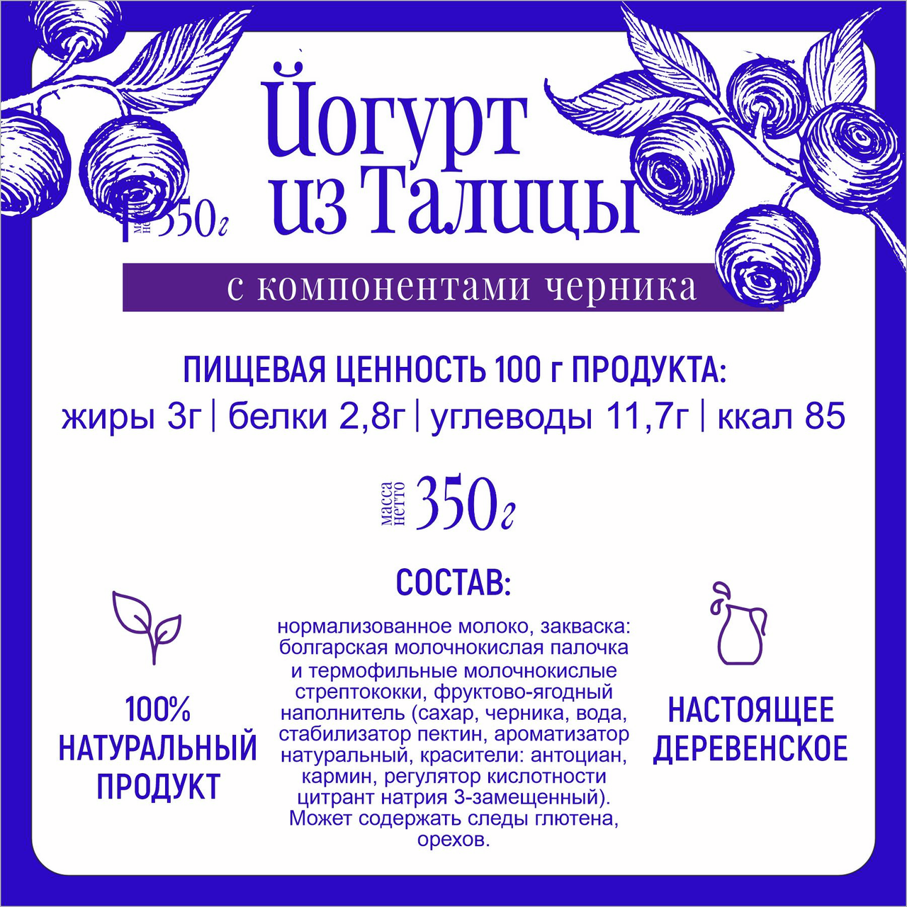 Йогурт питьевой Из Талицы из Талицы черника 3%, 350мл