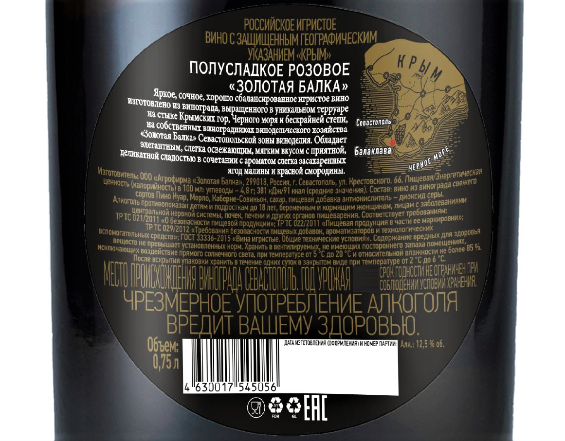 Вино игристое Золотая Балка розовое полусладкое, 0.75л