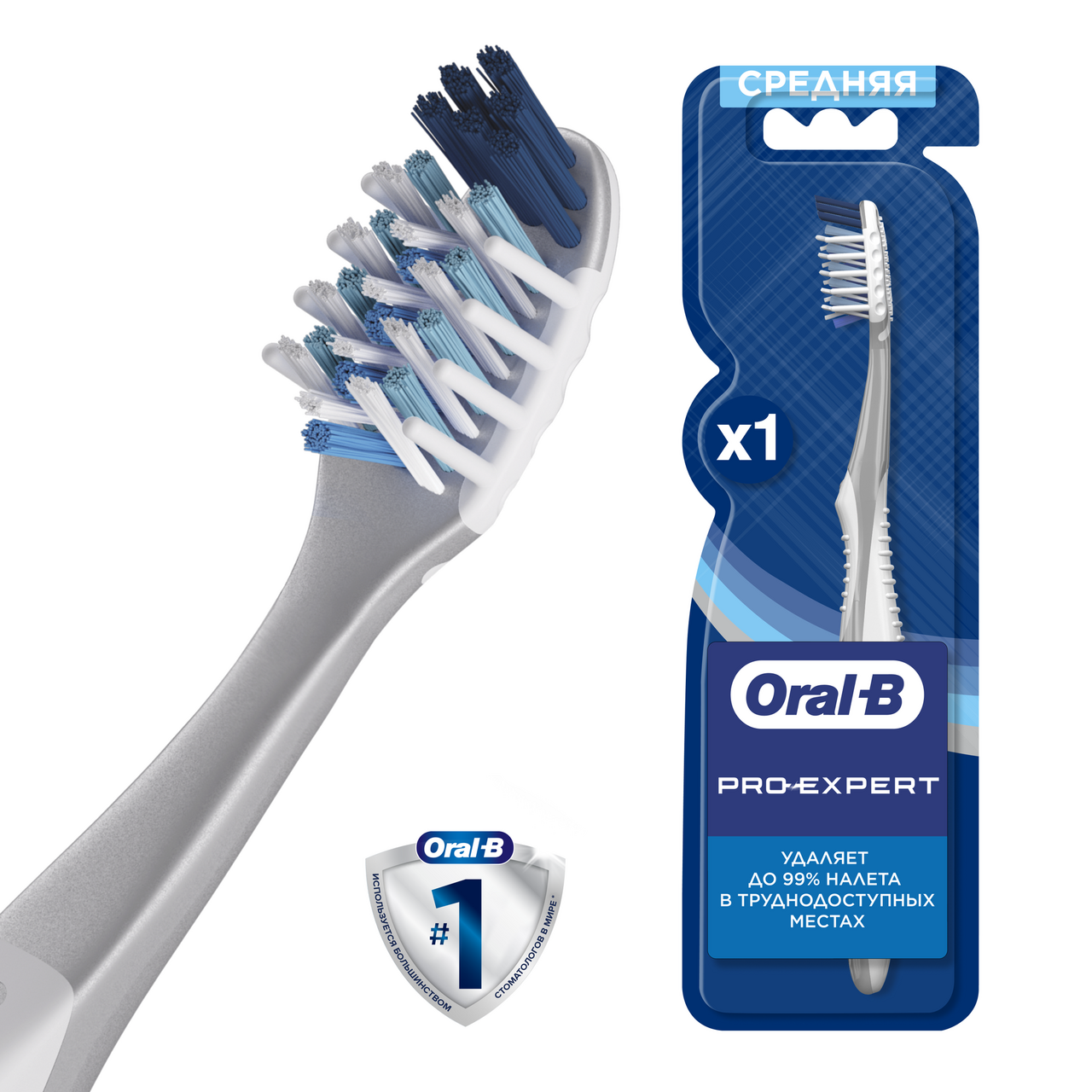 Мануальная зубная щетка Oral-B Pro-Expert Clean удаляет до 99% налета в труднодоступных местах. Щетка обладает идеальным углом наклона щетинок технологии CrissCross для превосходной чистки по сравнению с обычной зубной щеткой. Щетинки Power Tip глубоко проникают в пространства между зубами, удаляя налет в труднодоступных местах. Мягкие стимуляторы по бокам головки щетки нежно массируют десны. Кроме того, у щетки есть поверхность для чистки языка для свежести во всей полости рта. Средняя жесткость щетинок. Меняйте свою щетку раз в три месяца для более эффективной чистки. Oral-B – №1 марка, рекомендуемая большинством стоматологов в мире на основании результатов опросов, проведенных с ноября 2019 г. по июнь 2021 г. и подтвержденных как статистически значимые Компанией Radius Illumination, сент. 2021 г.